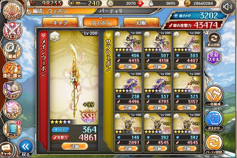 だからまあ一応、こんな感じでHPを補強してやる必要はあるなと。素直にディフェ大の機獣武器突っ込むでもいいとは思いますけどね。このくらい武器が揃ってれば200万上限なんか簡単に叩き出せると思うんで。