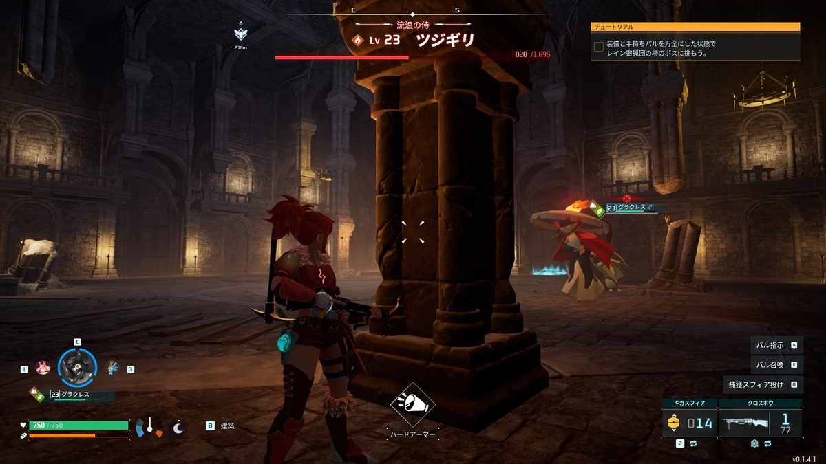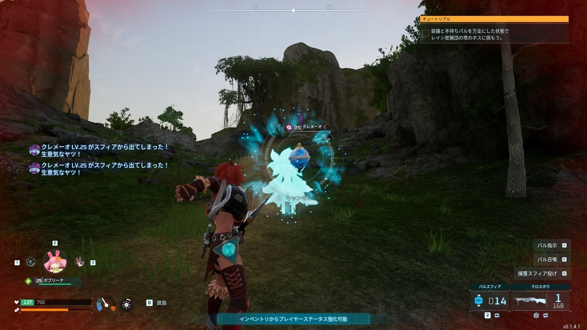 Lv25前後のパルも捕まえられるようになりました。やっとこさビーナイトの確保に成功。数撃ちゃ当たる戦法でノーマルスフィアはギリギリ使える範囲。配合牧場の準備も整ってしまったので、タマモ解雇の日も近い。採掘拠点を本格的に動かし始めたので、以降はギガスフィアをメインにパル確保することになるでしょう。