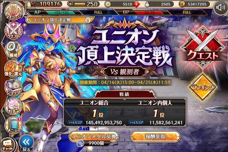 実際自分も初日は出遅れて、既に3バトル中1バトル終わってて、諦めてご飯食べた後にリセットされたバトルを1人でしこしこ稼いでましたし。1人で参加してキュアメディックのために「よろしくね!」スタンプを打ってる始末。ユニオンチャットじゃあれこれ話されてるログを追うだけという。まあこうして文章に起こしてるだけでも疎外感MAXだな。みじめすぎるだろ。