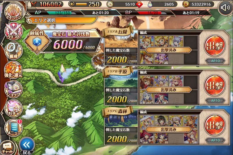 魔法石。最早難しさを感じることなく6,000獲得。20waveにして最大12,000魔法石取れるようにしてくんない?それが無理なら6編成12,000でもいいよ♡
