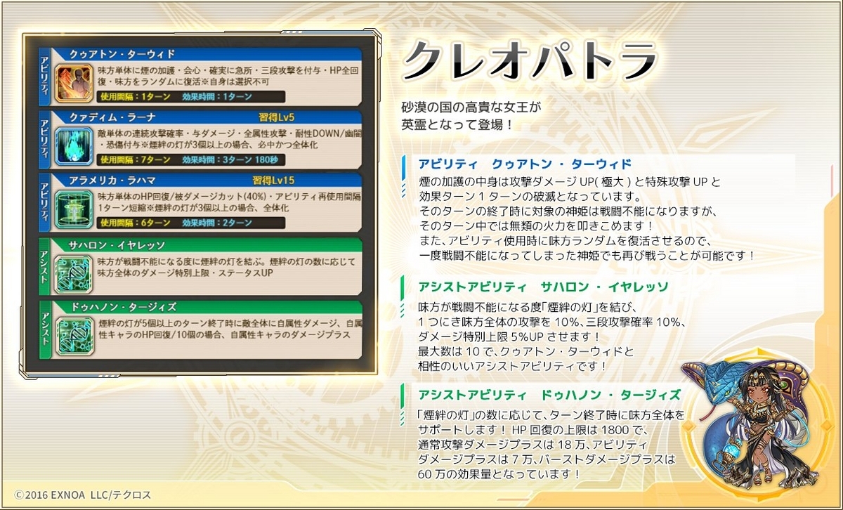 それを抜きにしても墓地送り6回後の2アビ3アビに分かりやすく強いこと書いてありますし、アシストで毎ターン全体1800回復までできちゃうわけだからすごい。ま、いずれにせよ普段使いはないと思いますけども。使うのが難しそうだな。まだエアプ段階ではありますが、テキストを読んでいる限りでは項羽よりも強そう。てか項羽もそうだったけど、味方をいたぶる系英霊が最近の流行りなのか?